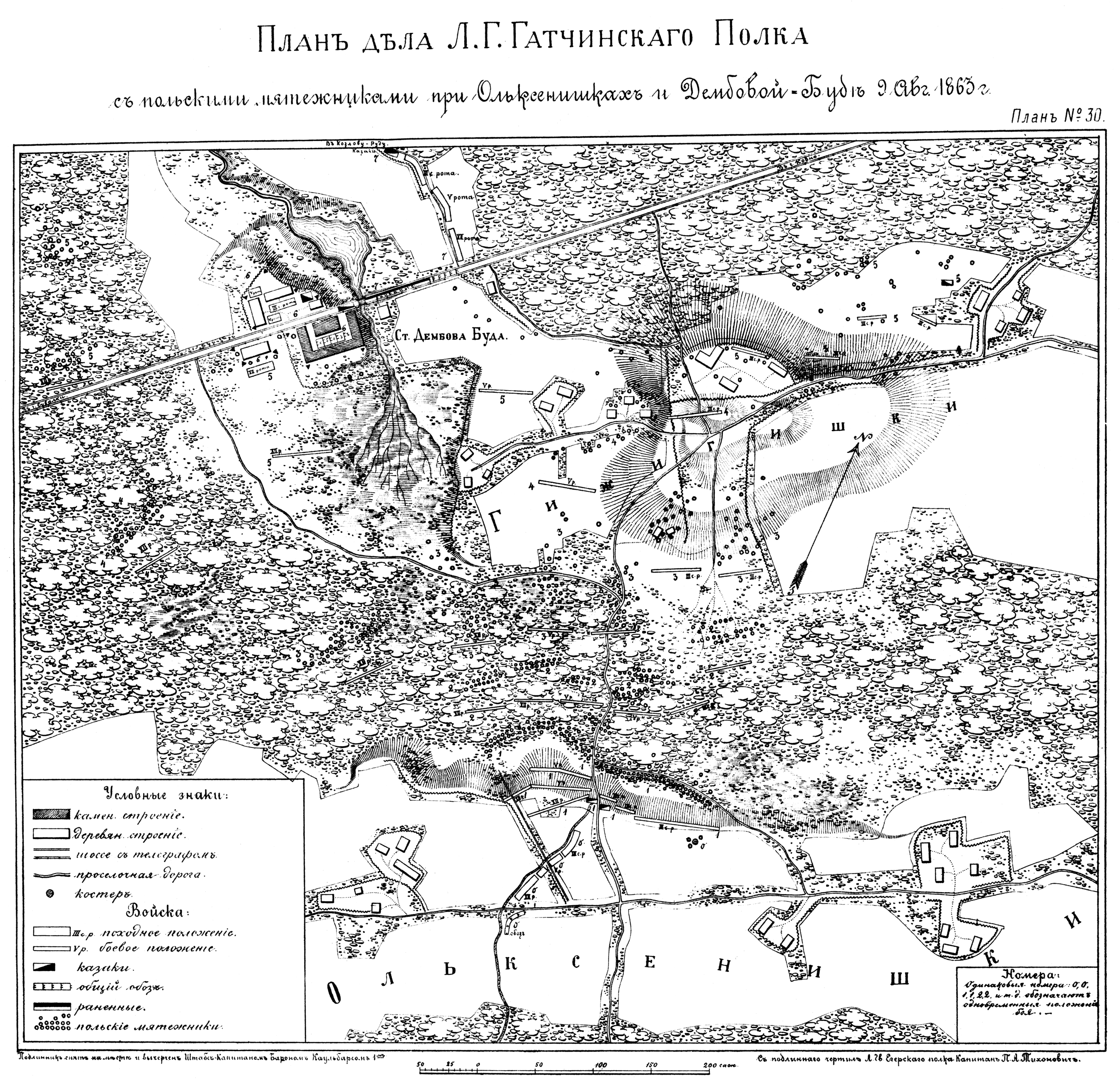 План дела Лейб-гвардии Гатчинского полка с польскими мятежниками при Ольксенишках и Дембовой-Буде 9 августа 1863 года