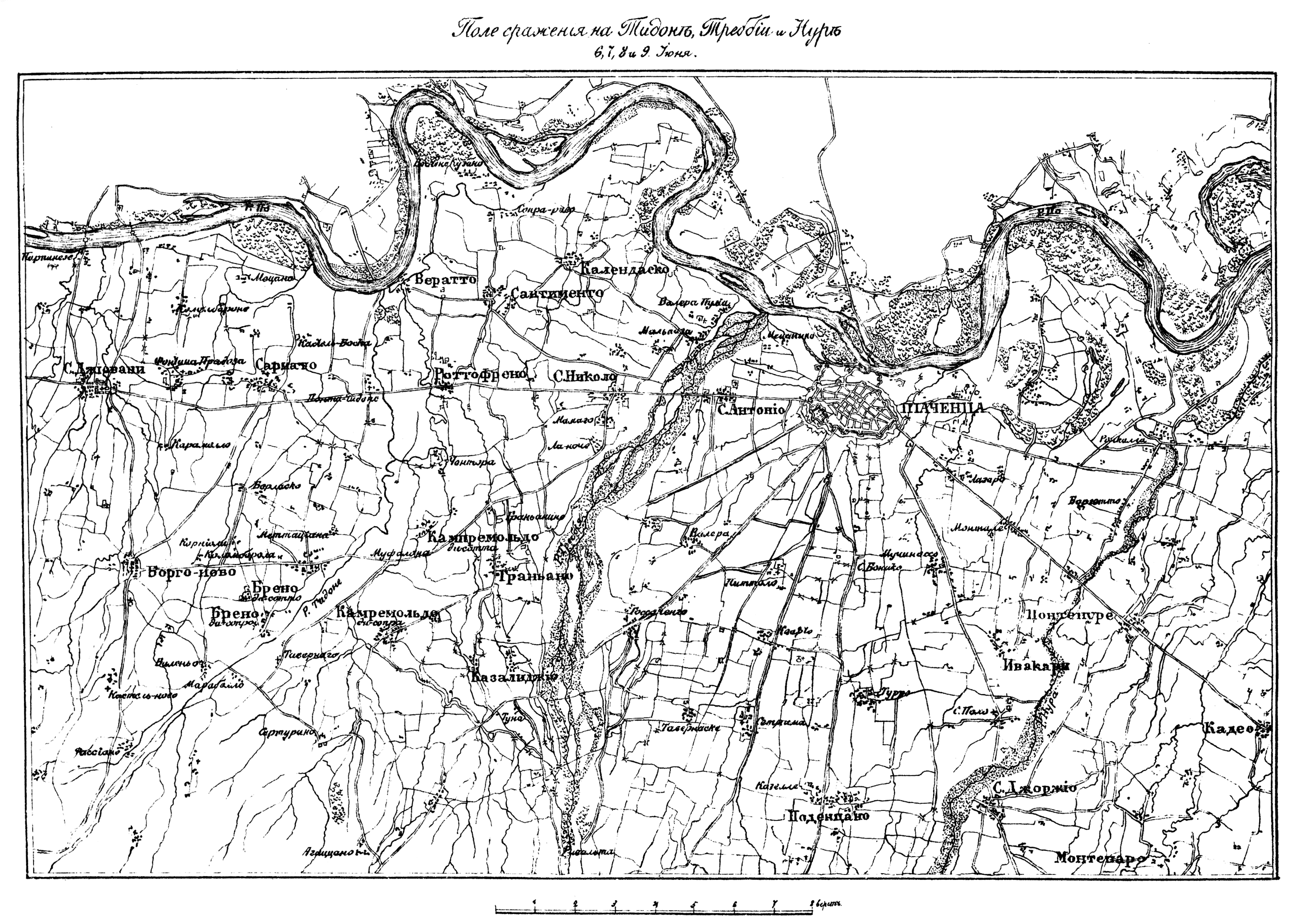 Сражение на Тидоне, Треббии и Нуре 6, 7, 8 и 9 июня