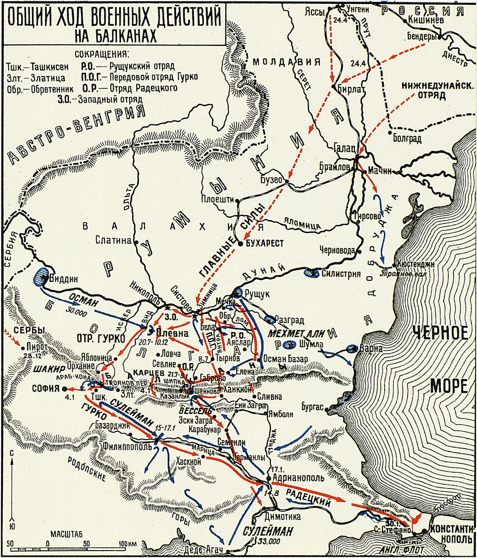 Карта: Общий ход военных действий на Балканах 1877 – 1878