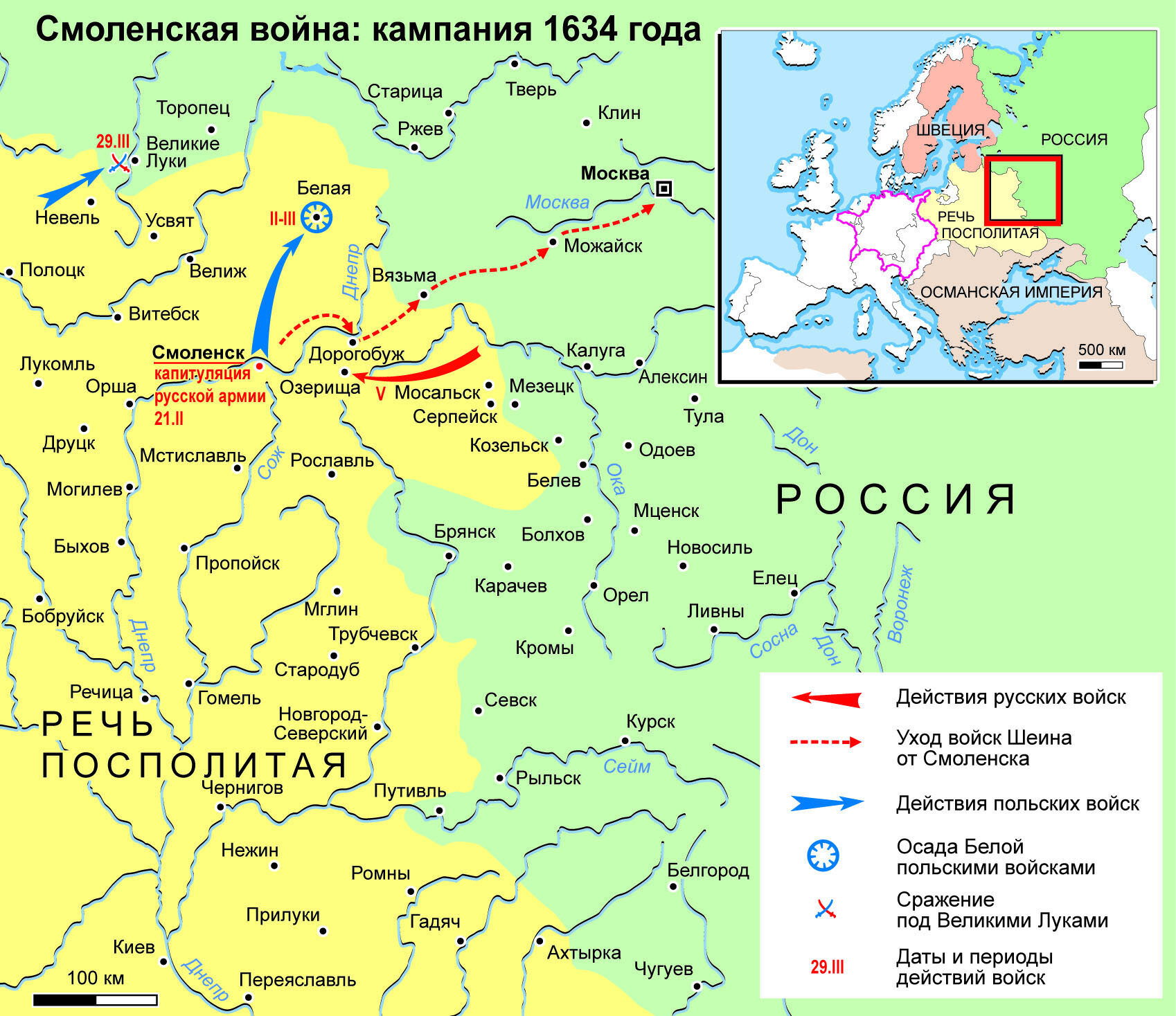Карта: Русско-польская (Смоленская) война 1632—1634 гг. Кампания 1634 г.