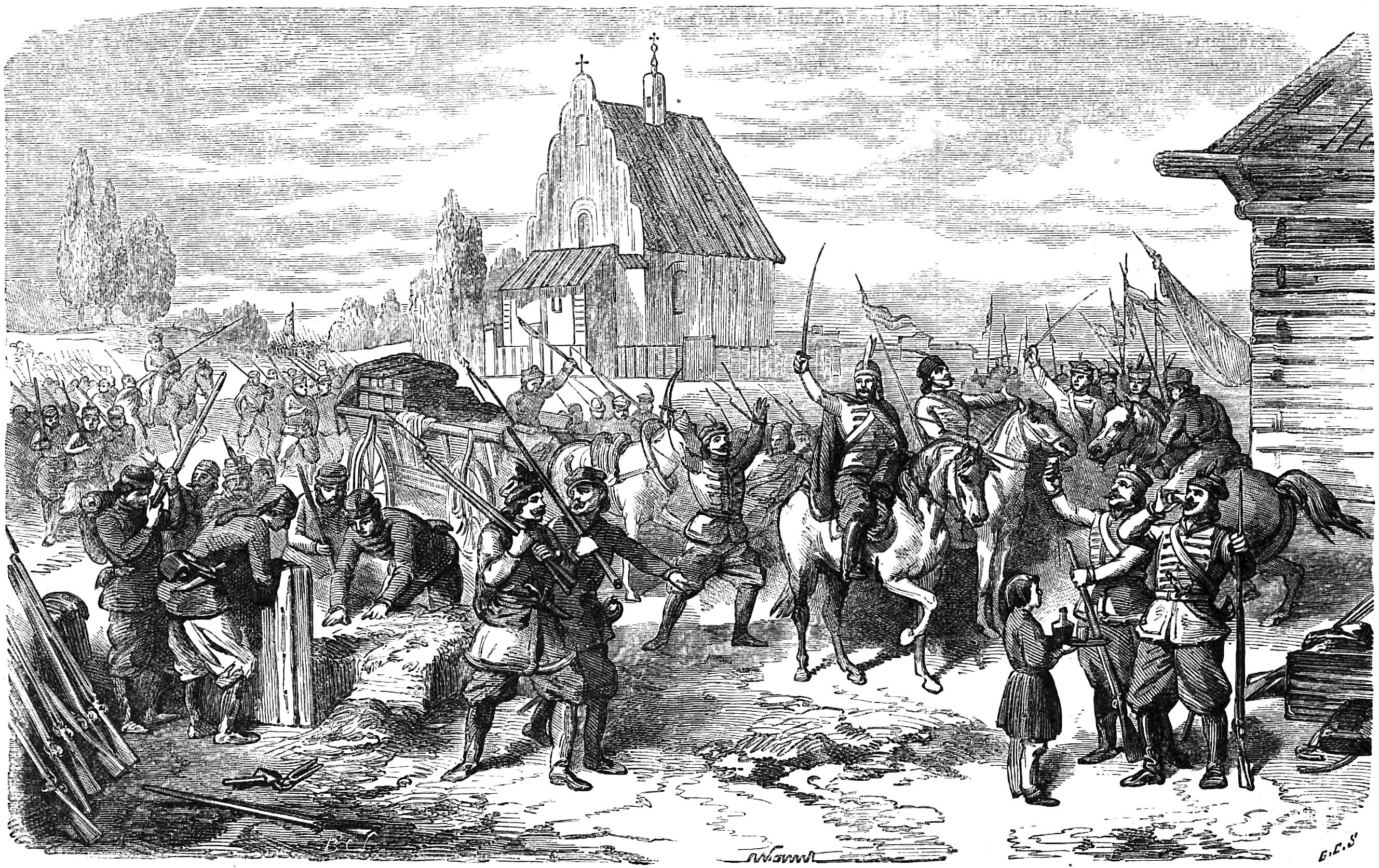 Около 100 мятежников укрылись в деревне Унецк. Полковник Сержпутовский окружил их, но повстанцы заперлись в двух больших домах и встретили отряд огнем. Несколько раз повстанцы пытались пробиться, но меткий огонь возвращал их обратно. Наконец дома загорелись, и мятежники стали просить о пощаде. Когда полковник подъехал к ним, по нему выстрелили почти в упор, после чего несколько мятежников было убито на месте.