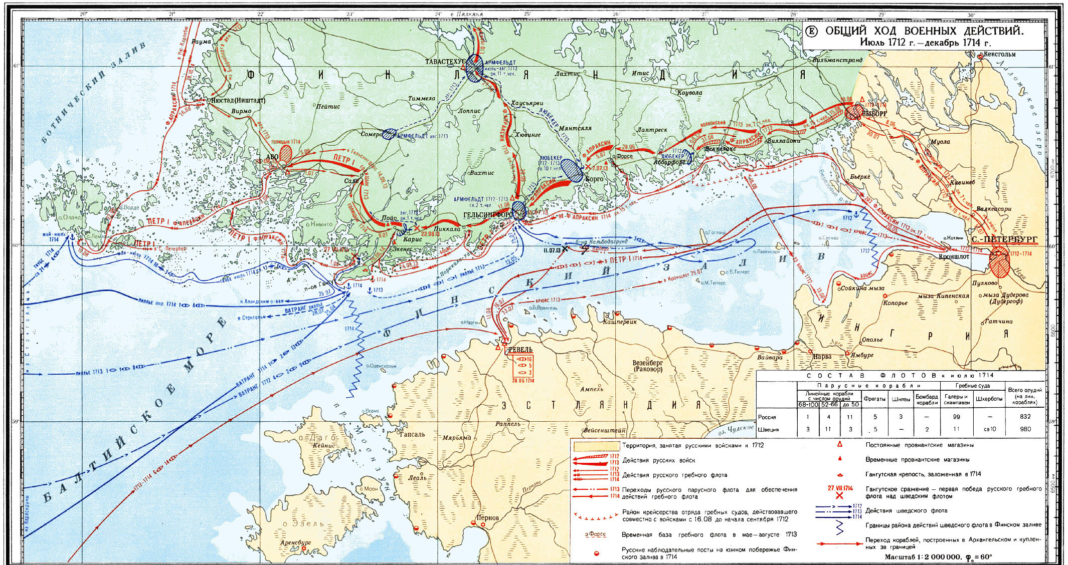Карта: Совместные действия русской армии и флота на побережье Финляндии в 1712 — 1714 гг.