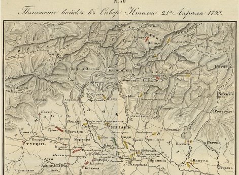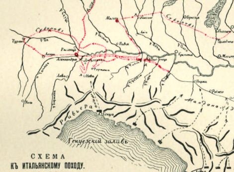 Схема к Итальянскому походу. Путь действий Суворова