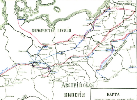 Карта действий от границ России к Германии