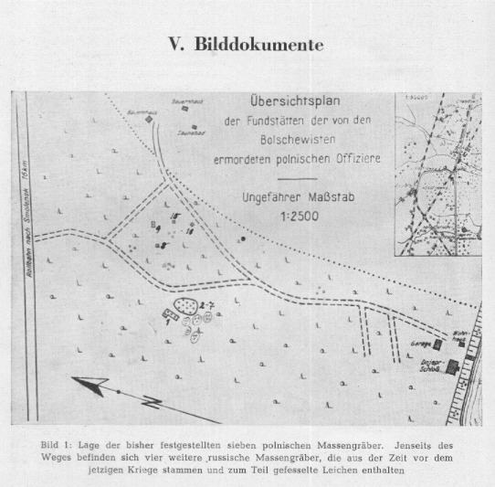 Схема расположения захоронений в Козьих Горах. Amtliches Material zum Massenmord von Katyn. Берлин.