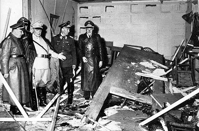 Борман и Геринг осматривают совещательную комнату в бункере Гитлера «Вольфшанце» в Восточной Пруссии после покушения 20 июля 1944 года.