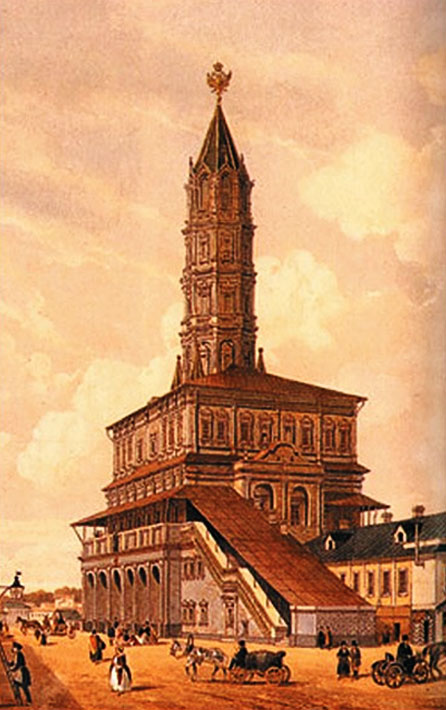 Сухарева башня в Москве, в которой размещалась Навигацкая школа. 18 век