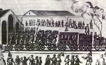 Открытие железной дороги между Петербургом и Москвой. Рисунок середины 19 века