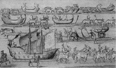 Маскарад в Москве по случаю заключения Ништадтского мира. Гравюра 18 века