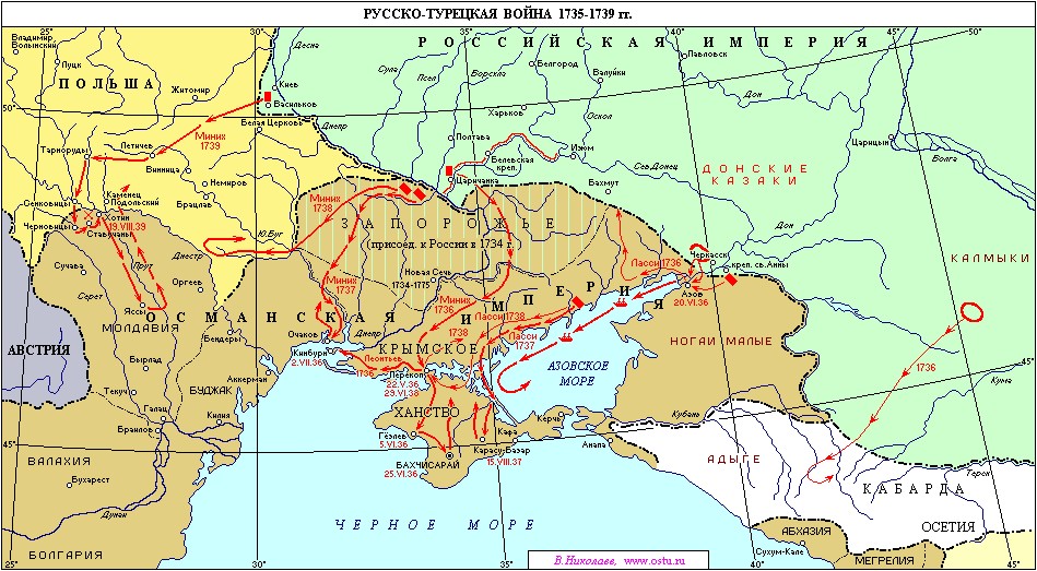 Карта боевых действий русско-турецкой войны 1735-1739 гг.