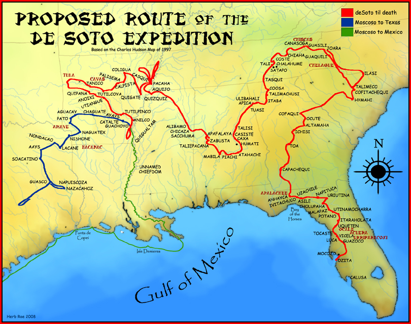 В 1541 году члены испанской экспедиции Эрнандо де Сото, первыми среди европейцев достигают берегов Миссисипи.