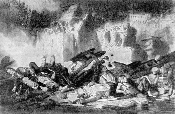 В Париже вооруженная борьба продолжалась около двух дней (13 и 14 апреля). При подавлении восстания были совершены чудовищные злодеяния. Особенно бесчинствовали солдаты на улице Транснонэн, где были перебиты ни в чем не повинные люди, в том числе старики, женщины, дети.