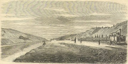 «При Аббасе-паше, управлявшем Египтом в 1849—54 гг., об осуществлении канала не было речи; но когда вице-королем Египта стал Саид-паша, то Лессепс, давно знавший его лично, поспешил в Египет и добился от него 19 мая 1855 г. фирмана на основание компании ("Compagnie universelle du canal maritime de Suez"). Этим фирманом египетское правительство давало право на прорытие канала и на эксплуатацию его в течение 99 лет со времени открытия, после чего канал должен был поступить в собственность египетского правительства; оно обязывалось отвести безвозмездно необходимые для работ земли, поставлять рабочих и вообще оказывать содействие сооружению; за это оно выговаривало себе 15% чистого дохода (кроме дохода с тех акций, которые оно покупало) и право назначать директора компании из числа наиболее крупных акционеров. 10% дохода должны были идти в пользу основателей компании, а остальные 75% — акционерам. В том же 1855 г. Лессепс добился ратификации фирмана со стороны турецкого султана, но только в 1859 г. смог основать в Париже компанию. Ее основной капитал равнялся 200 млн. фр. (в эту сумму исчислены были Лессепсом все издержки предприятия), разделенных на 400 тыс. паев по 500 фр. каждый; на значительную их часть подписался Саид-паша. В том же году начались работы. Английское правительство, и во главе его Пальмерстон, опасаясь, что Суэцкий канал поведет к освобождению Египта из-под власти Турции и к ослаблению или к потере господства Англии над Индией, ставило на пути к осуществлению предприятия всевозможные препятствия, но должно было уступить перед энергией Лессепса, тем более, что его предприятию покровительствовали Наполеон III и Саид-паша, а потом (с 1863 г.) его наследник, Измаил-паша. Технические трудности были громадны. Приходилось работать под палящим солнцем, в песчаной пустыне, совершенно лишенной пресной воды. Первое время компания должна была употреблять до 1600 верблюдов только для доставки воды рабочим; но к 1863 г. она закончила небольшой пресноводный канал из Нила, шедший приблизительно в том же направлении, что и древние каналы (остатками которых кое-где удалось воспользоваться), и предназначенный не для судоходства, а единственно для доставки пресной воды — сперва рабочим, потом и поселениям, долженствовавшим возникнуть по каналу. Этот пресноводный канал идет от Сагасига при Ниле на восток к Измаилии, а оттуда на юго-восток, вдоль морского канала, к Суэцу; ширина канала 17 м на поверхности, 8 — по дну; глубина его в среднем только 2 ¼ м, местами даже значительно меньше. Его открытие облегчило работы, но все-таки смертность среди рабочих была весьма велика; их доставляло египетское правительство, но приходилось пользоваться также европейскими рабочими (всех рабочих было от 20 до 40 тыс.). 200 млн. фр., определенных по первоначальному проекту Лессепса, скоро не хватило, в особенности вследствие громадных трат на подкупы при дворах Саида и Измаила, на широкие рекламы в Европе, на расходы по представительству самого Лессепса и других воротил компании. Пришлось сделать еще облигационный заем в 166666500 фр., потом еще другие, так что общая стоимость канала к 1872 г. достигла 475 млн. (к 1892 г. — 576 млн.). В шестилетний срок, в который Лессепс обещал окончить работы, окончить их не удалось, и канал был закончен только через 10 лет. 16 ноября 1869 г. он был торжественно открыт. Длина его равнялась 160 км, ширина