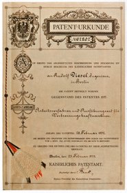 В 1893 году немецкий конструктор Рудольф Дизель берет патент на изобретение первого в мире двигателя внутреннего сгорания