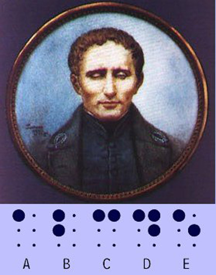 Во Франции опубликован труд Луи Брайля «Способы напечатания слов, нот и математических знаков, выполненных шеститочиями». Эта система стала основой общепринятой сегодня во всем мире системы письменности для слепых. Луи Брайль, родилсяв в 1809. Его семья жила в деревне Куврэ под Парижем. Отец был шорником, мастером седельных дел. В детстве Луи повредил себе глаз ножом в отцовской мастерской. Началась инфекция, которая перекинулась на второй глаз, и вскоре он полностью ослеп.В это время в Париже открылась одна из первых школ слепых в мире.- Institution Royale des Jeunes Aveugles (Королевский Институт для Слепой Молодежи) и юному Луи посчастливилось поступить в нее. Программа Национального института для слепых, была широкой и разнообразной. Воспитанников в институте обучали грамоте, музыке, вязанию и ткачеству.Брайль преуспевал во всех науках, но его главным увлечением стала самостоятельная разработка системы письменности для слепых.Луи не было и 16 лет, когда его осеняет гениальная идея - создать условный алфавит из различных комбинаций шести рельефных точек, расположенных в две колонки по три.4 15 26 3 В этой системе возможны в целом 63 перестановки. Расстояние между двумя точками Брайля 2-2,5 мм, и для прочтения текста "читатель" проводит кончиками пальцев по выдавленным строчкам. После долгого обдумывания и доработки в 1829 году Луи Брайль опубликовывает небольшой труд с изложением своей системы, которую он дополняет знаками препинания, цифрами и нотными знаками. Окончательный вариант его рельефно-точечного шрифта увидел свет в 1837 году.В системе Брайля нумерация точек идёт сверху вниз по столбцам. Чтобы потом при чтении было удобнее, нумерация точек при записи идёт в обратном порядке — сначала по правому столбцу, затем по левому: точка 1 находится в верхнем правом углу, под ней — точка 2, в нижнем правом углу — точка 3. В левом верхнем углу находится точка 4, под ней — точка 5, в левом нижнем — точка 6.Существует всего 63 различных символа. Вследствие такой ограниченности общего числа различных комбинаций точек, часто используются двуклеточные знаки (состоящие из двух знаков, по отдельности имеющих свои функции), дополнительные знаки (большие и малые буквы разных алфавитов, цифровой знак и т. д.). Каждая комбинация имеет несколько значений, порой доходящих почти до десятка.Кириллица брайлем.