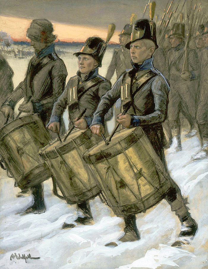 Бьернеборгский марш (марш Бьернеборгского полка), Художник: Эдельфельт, Альберт ( 1854 —1905) Картон, гуашь 126,5 × 96,5 см 1892 г. Финская национальная галерея, Хельсинки Фрагмент. Смотреть полностью.