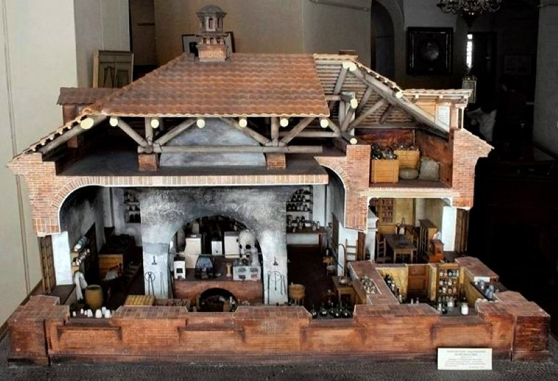 Макет Химической лаборатории М.В. Ломоносова. Автор проекта – Р.И. Каплан-Ингель. Изготовитель: Художественно-оформительский комбинат Ленинградского отделения Художественного фонда. Ленинградская обл., г. Пушкин. 1948-1949. Дерево. Музей антропологии и этнографии им. Петра Великого (Кунсткамера) - МАЭ РАН. Санкт-Петербург Фрагмент. Смотреть полностью.