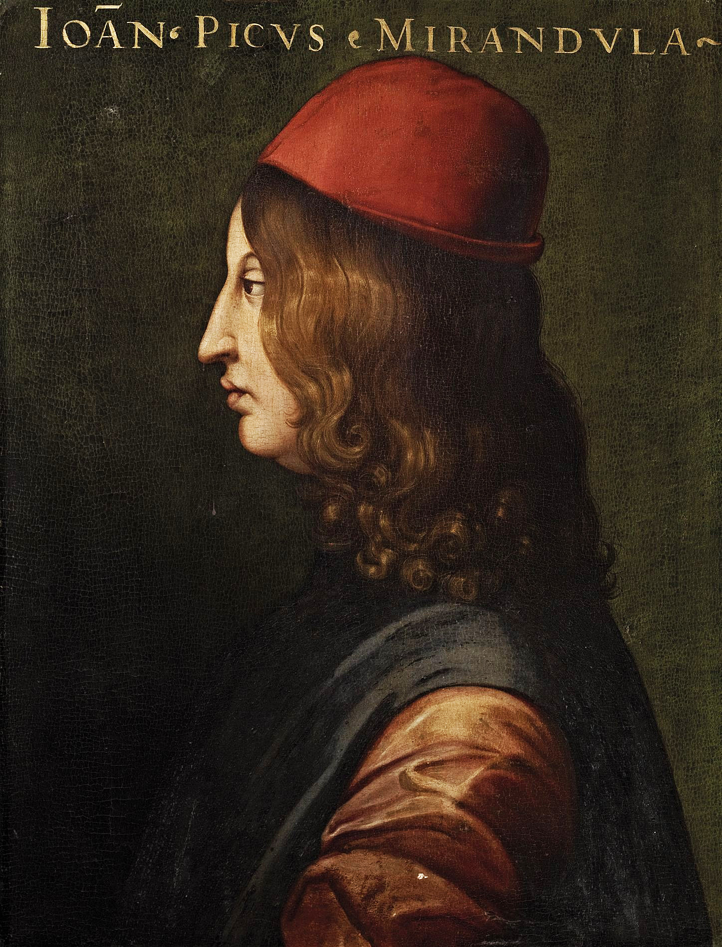 Портрет Джованни Пико делла Мирандолы Художник: Кристофано дель Альтиссимо Cristofano dell'Altissimo (1525–1605) (По оригиналу неизвестного мастера XV в.) 59x45 см Дерево, масло 1550-е годы. Галерея Уффици Флоренция, Италия Саратов Фрагмент. Смотреть полностью.