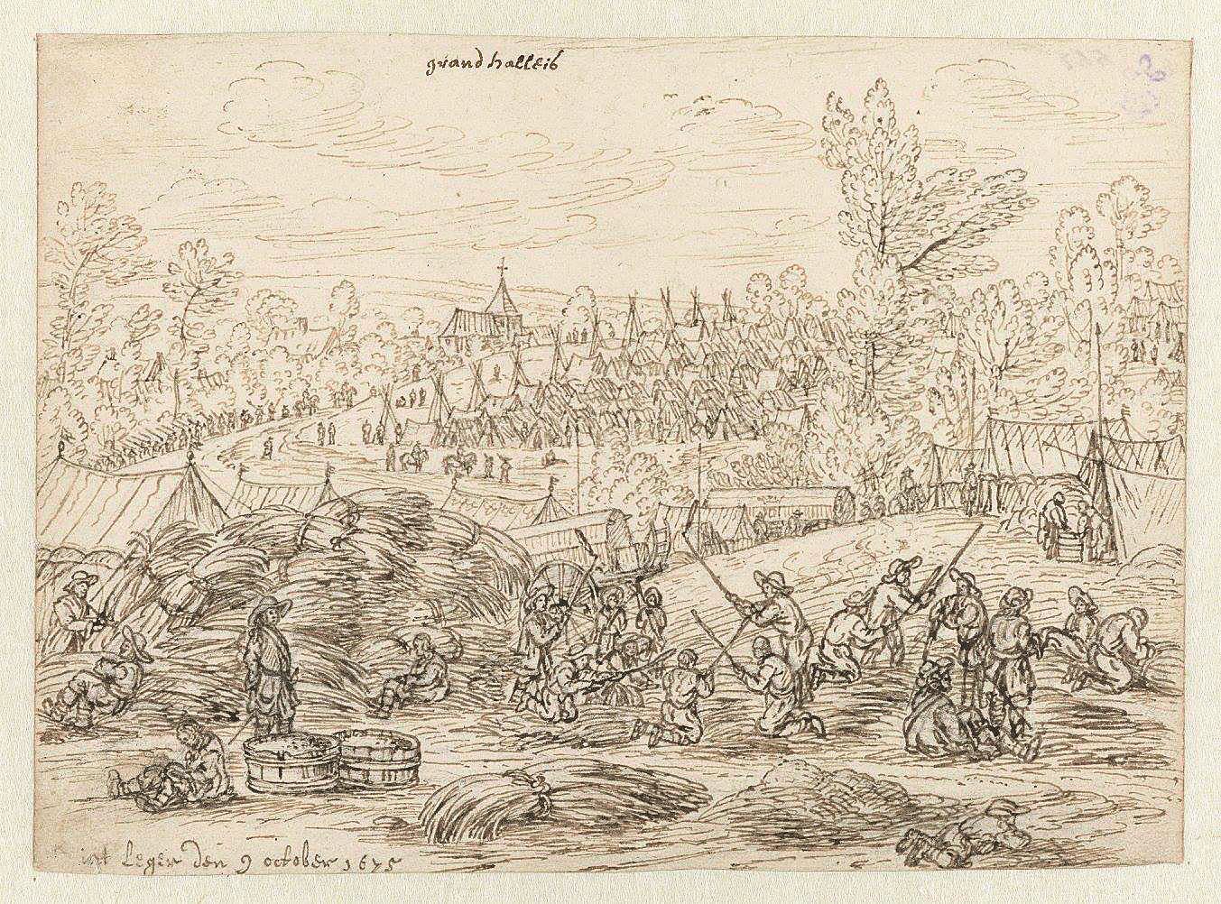 Вязание фашин и установка палаток в лагере армии Вильгельма III (1675)