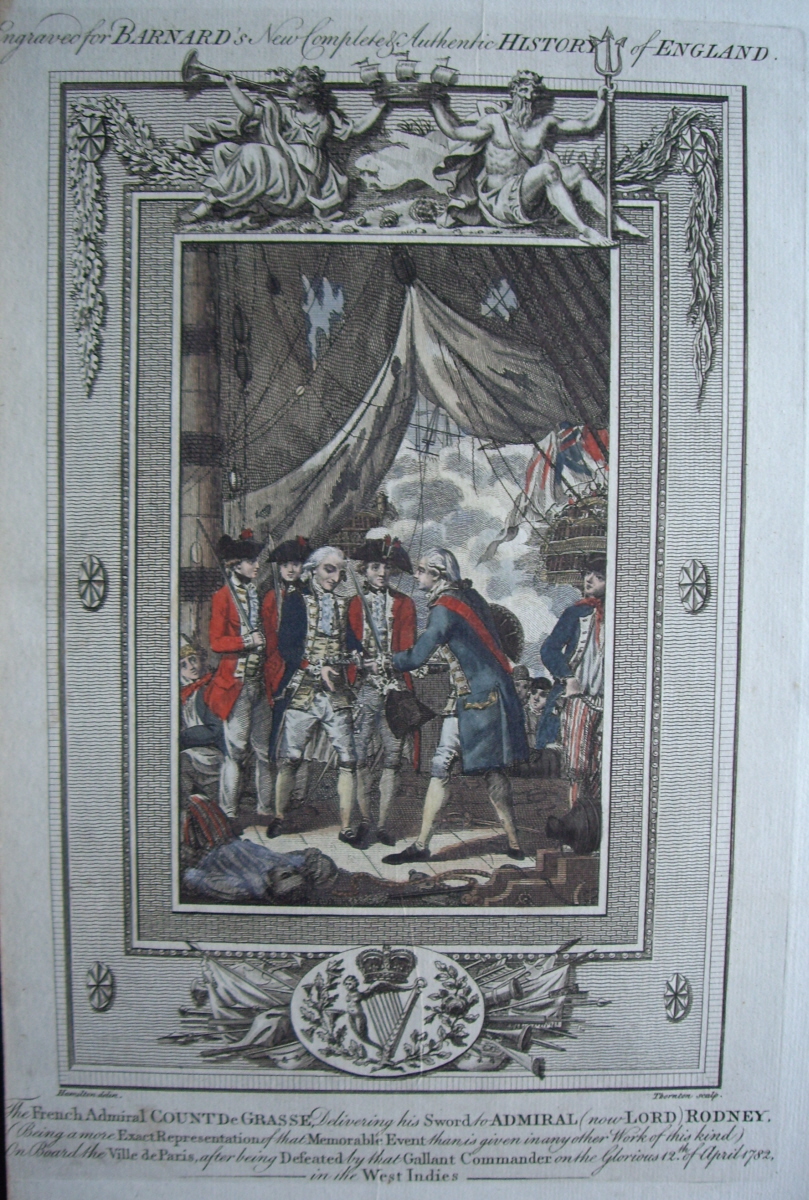 Де Грасс вручает свою шпагу Роднею на шканцах «Вилль де Пари»