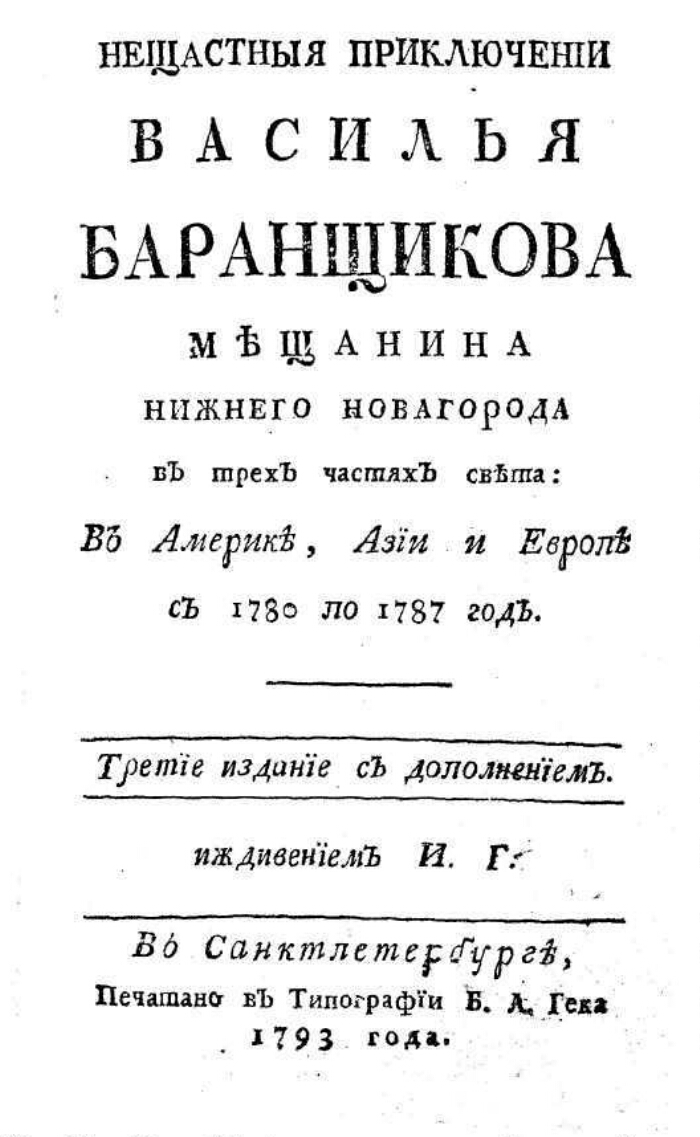 Заглавная страница книги купца Василия Баранщикова