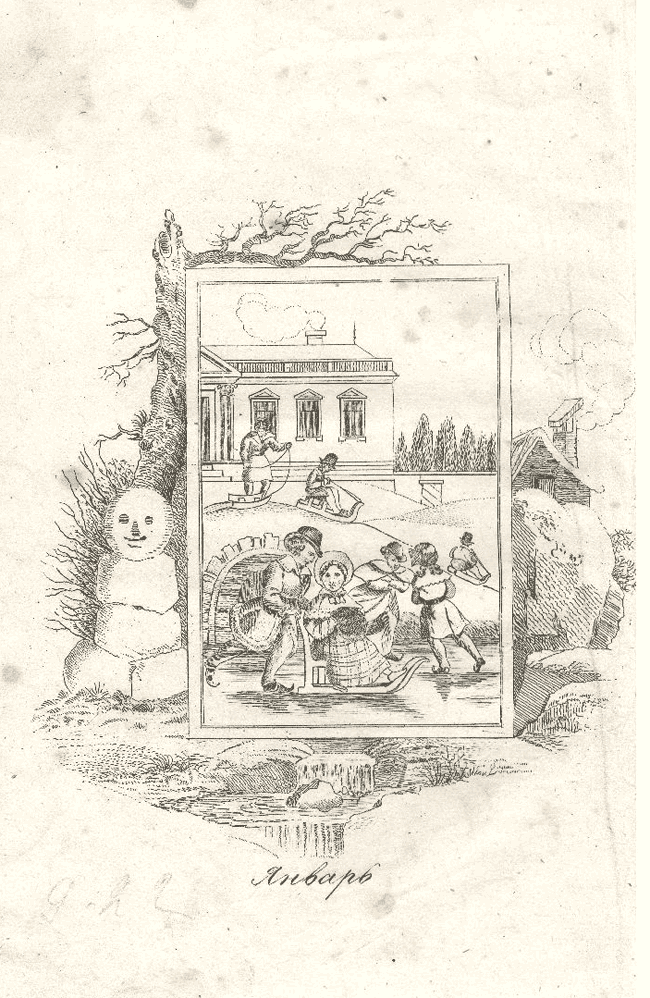 Венок, сплетённый из двенадцати раcсказов, посвящаемый юным друзьям природы. С двенадцатью гравированными картинками. – Москва, в Типографии А. Семена, При Императорской медико-хирургической академии, 1842. Гравюра на меди.