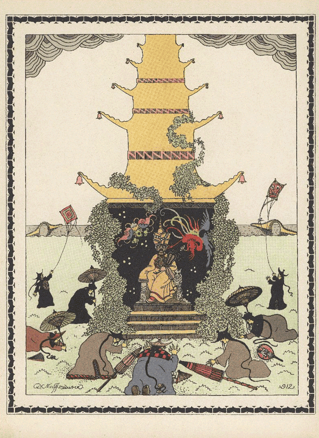Китайский император сидел в фарфоровой башне. Иллюстрация в книге