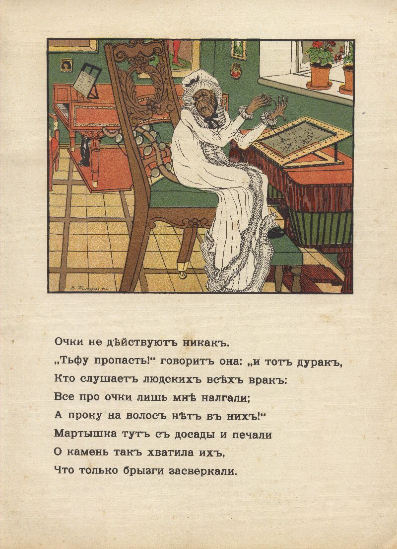 Иллюстрация к басне «Зеркало и обезьяна» в книге