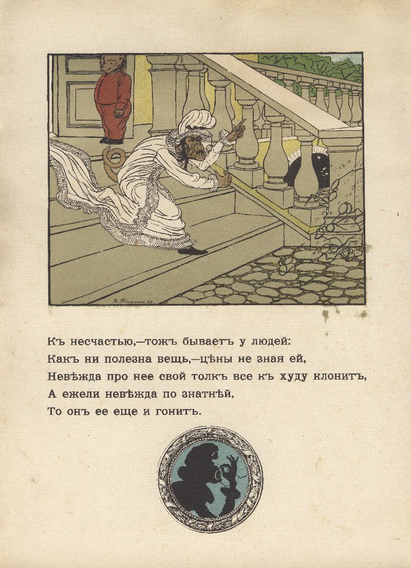Иллюстрация к басне «Зеркало и обезьяна» в книге