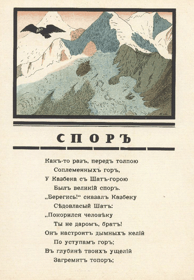 Как-то раз перед толпою соплеменных гор у Казбека с Шат-горою был великий спор…Иллюстрация в книге