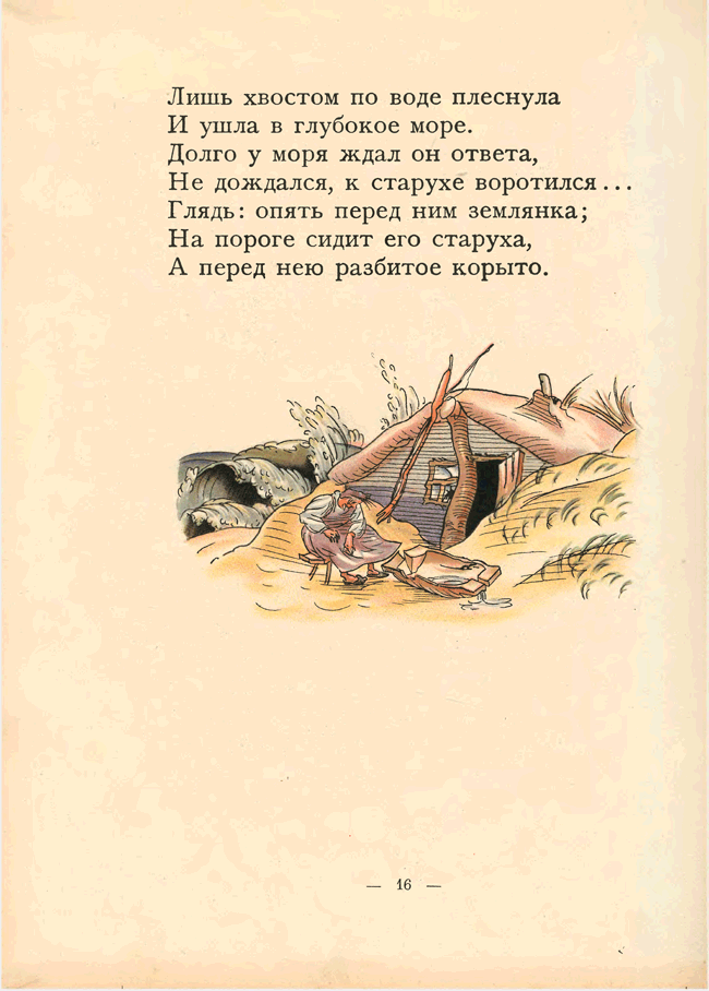 Воротился старик ко старухе, Рассказал ей великое чудо…Иллюстрация к книге