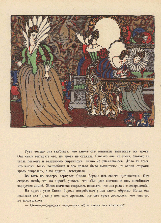 Через месяц после свадьбы Синяя борода сказал своей жене, что он должен уехать недель на шесть по одному важному делу. Иллюстрация в книге