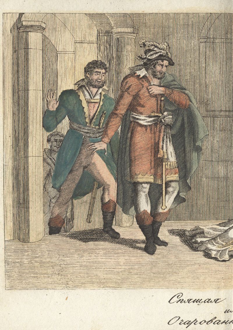 Соч. Перольта. Из которых взяты оперы и балеты, представляемые на Императорских театрах. Перевёл с французского Императорского московского театра актёр Баранов. С 11-ю картинами. Продаётся у книгопродавца В. Логинова на Никольской улице. – Москва, в Типографии Августа Семена, 1825. 10 л. илл. – гравюры на меди, раскрашенные от руки акварель