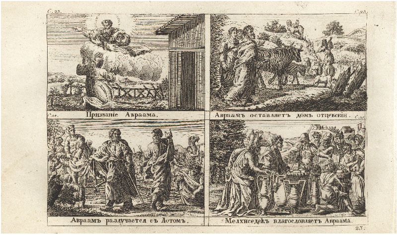 Призвание Авраама. Авраам оставляет дом отцовский. Авраам разлучается с Лотом. Мелхиседек благословляет Авраама. Иллюстрации к книге