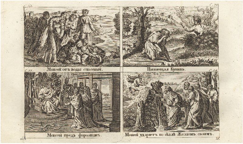 Моисей от воды спасенный. Пылающая Купина. Моисей пред фараоном. Моисей ударяет по скале жезлом своим. Иллюстрация к книге