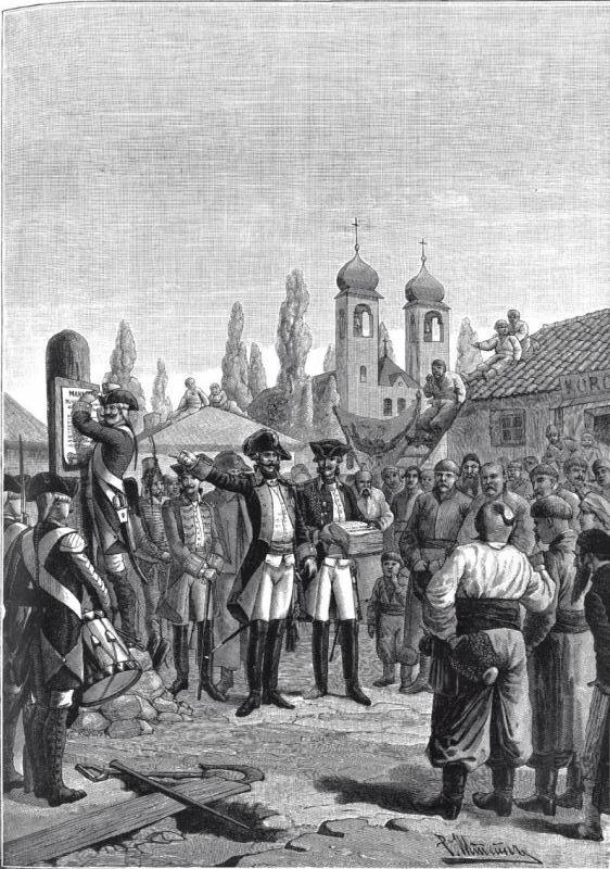 Столетие присоединения Волыни и подолии к России. Объявление генералом Кречетниковым манифеста императрицы Екатерины II.