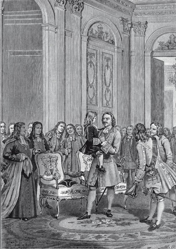 Пребывание Петра Великого в Париже. Малолетний Людовик XV посещает Петра во дворце Ледигиера в 1717 году.