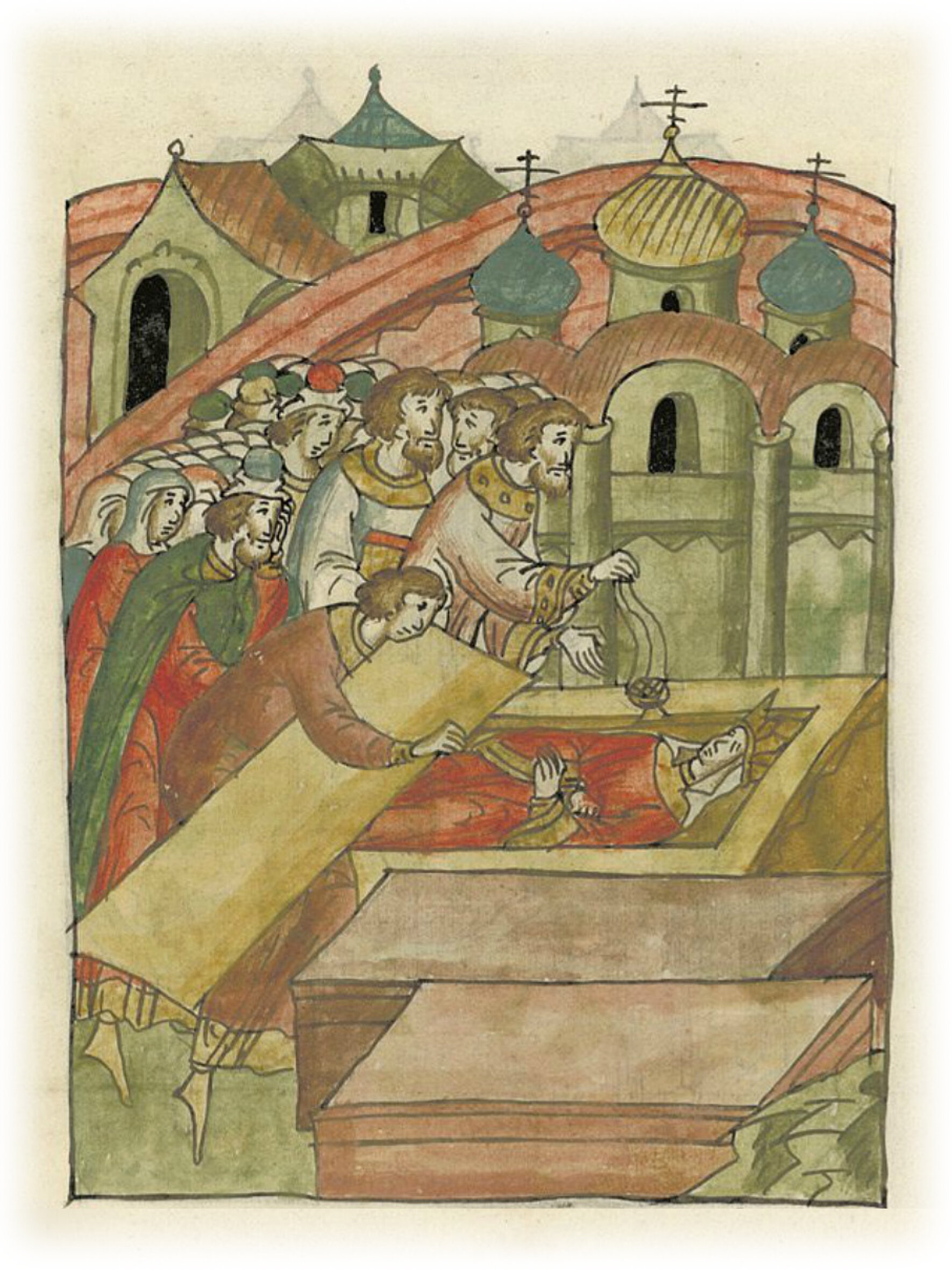 Похороны княгини Ефросинии, супруги князя Бориса, в церкви святых мучеников Бориса и Глеба.