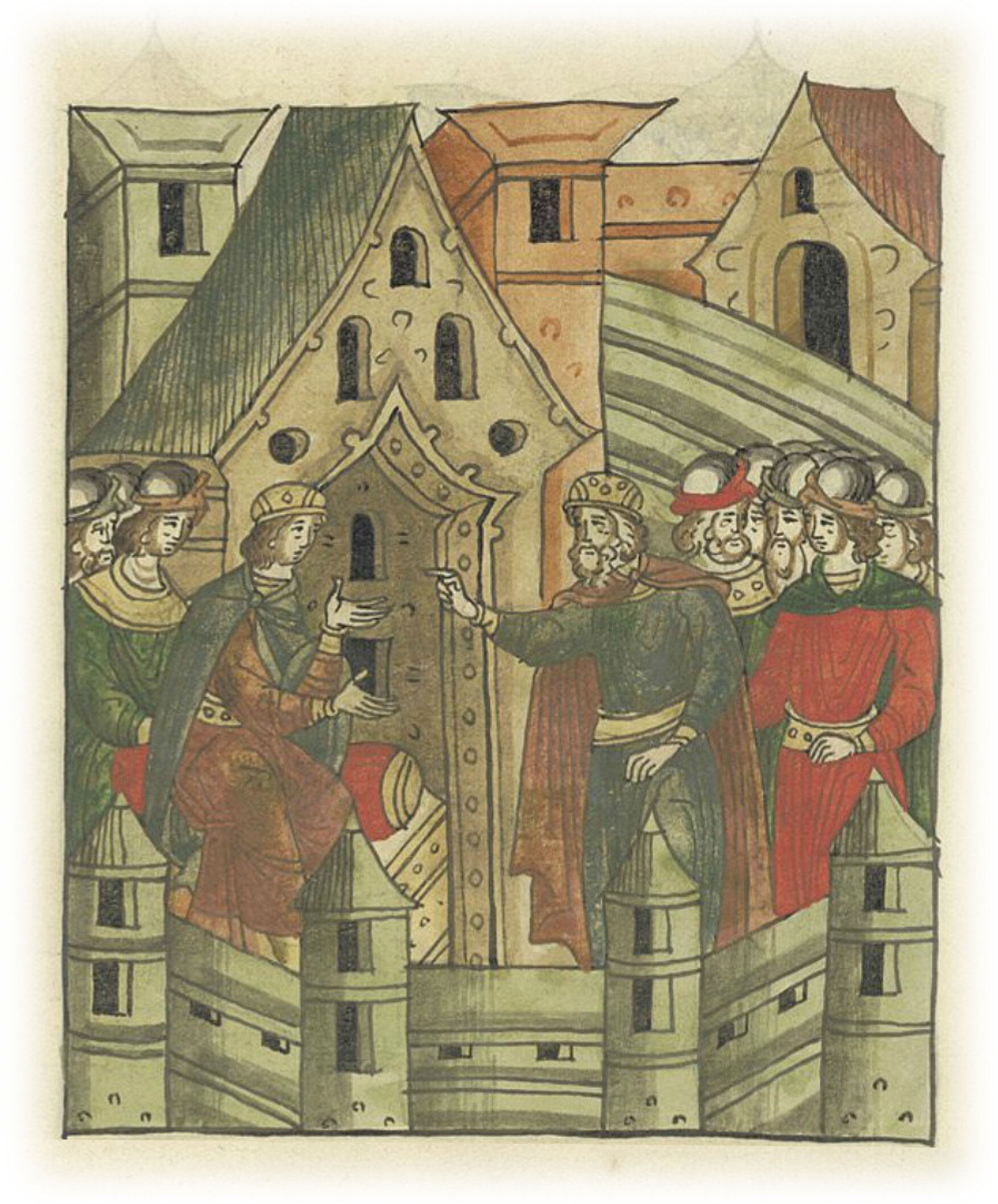 Ругодивские посадники Яким и Захар приезжают в Москву. Воеводы царя Ивана Васильевича Алексей Адашев и Иван Михайлов сообщают им, что государь пожалует их, если сдадут его воеводам помимо Ругодива Вышгород.