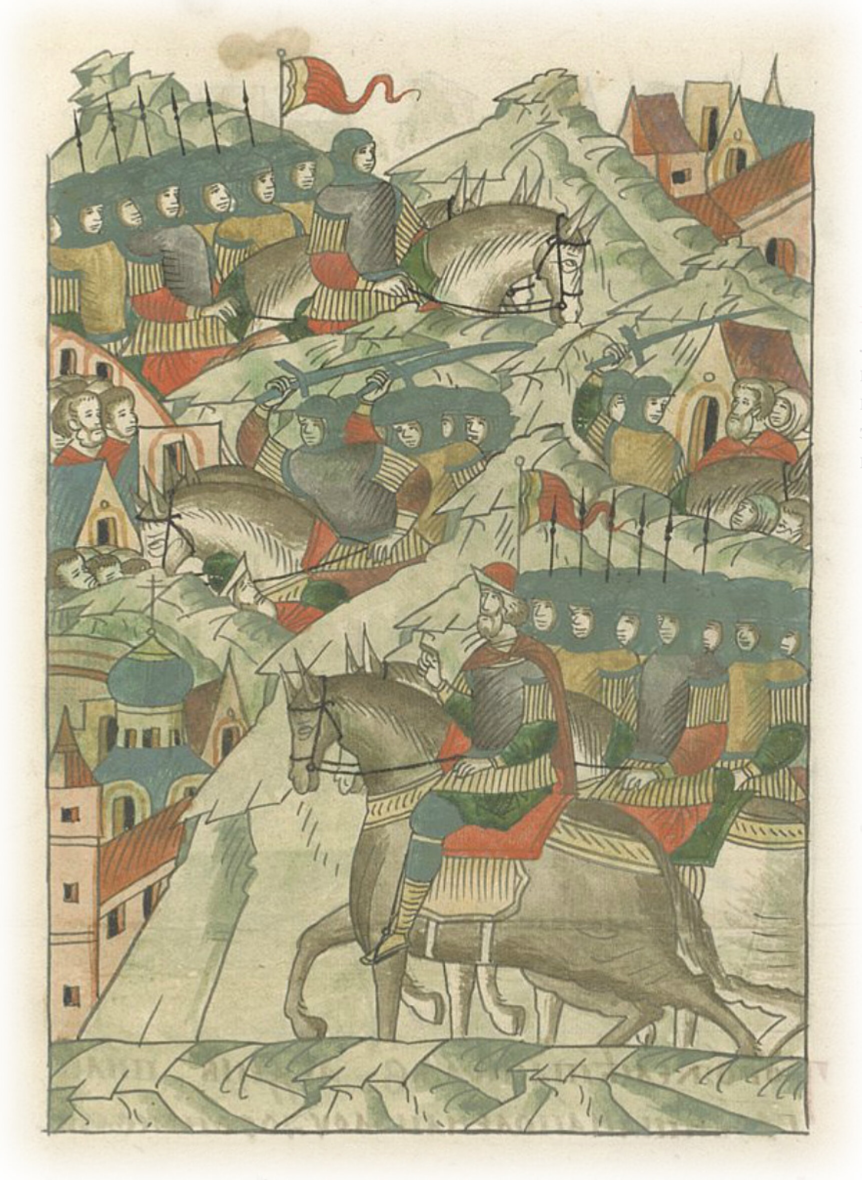 И собралась вся земля Ливонская, и выступили против отчины великого князя города Пскова и, завоевав псковские волости, возвратились восвояси.