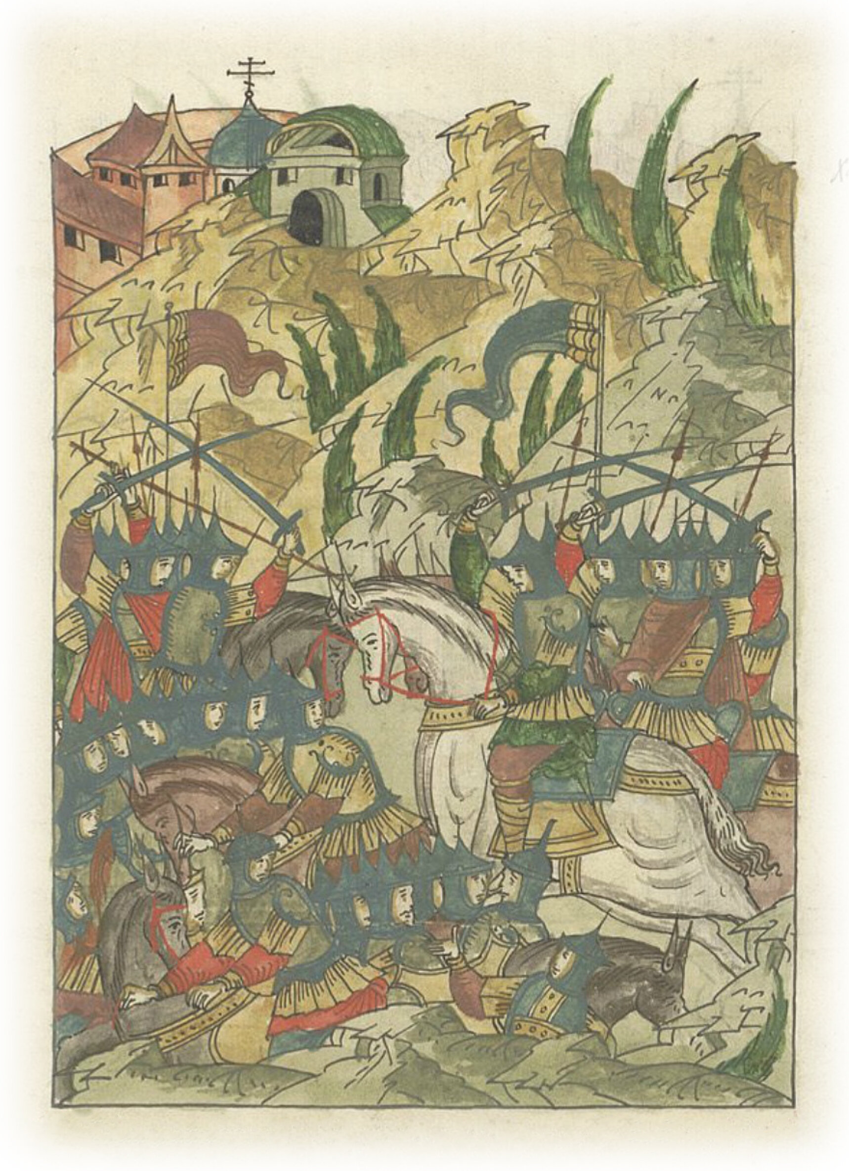 Татары убивают множество русских воинов, вышедших против царя Улу-Махмета.