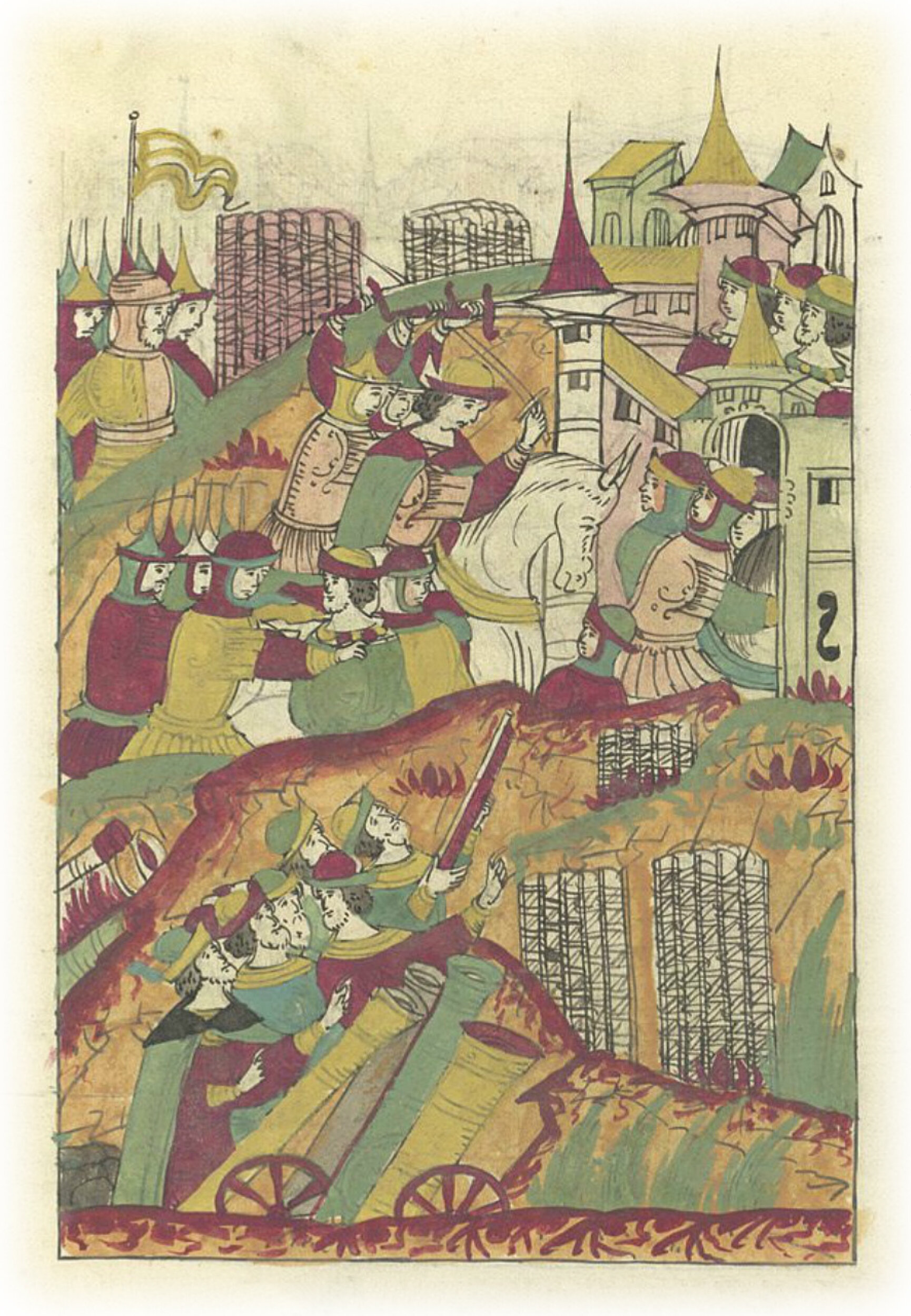 Языки говорят воеводам царя Ивана Васильевича, что магистр окопался большим рвом вокруг города Рындола, бьет из пушек и пищалей и приступает к Рындолу.