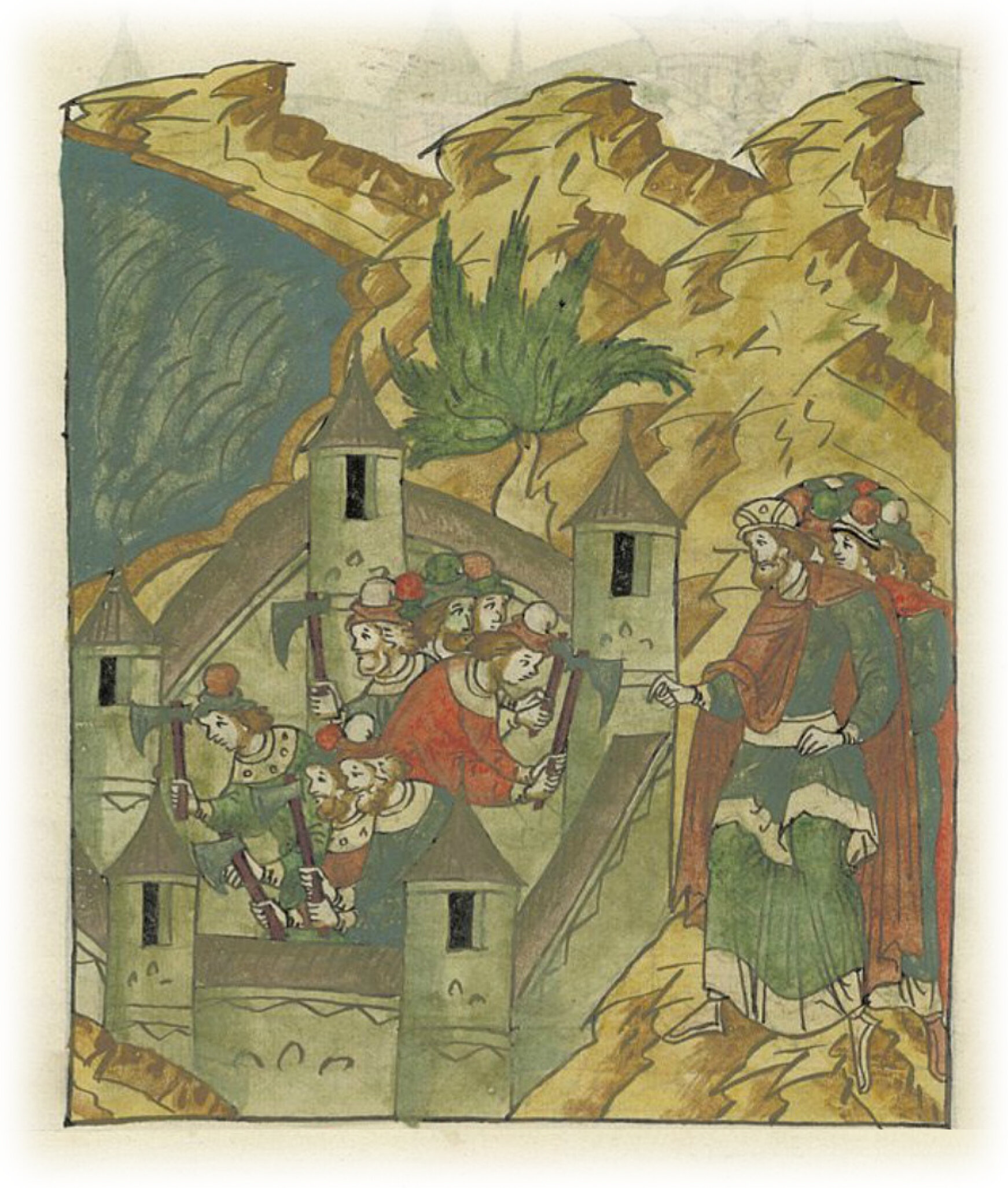 Языки говорят воеводам царя Ивана Васильевича, что магистр окопался большим рвом вокруг города Рындола, бьет из пушек и пищалей и приступает к Рындолу.