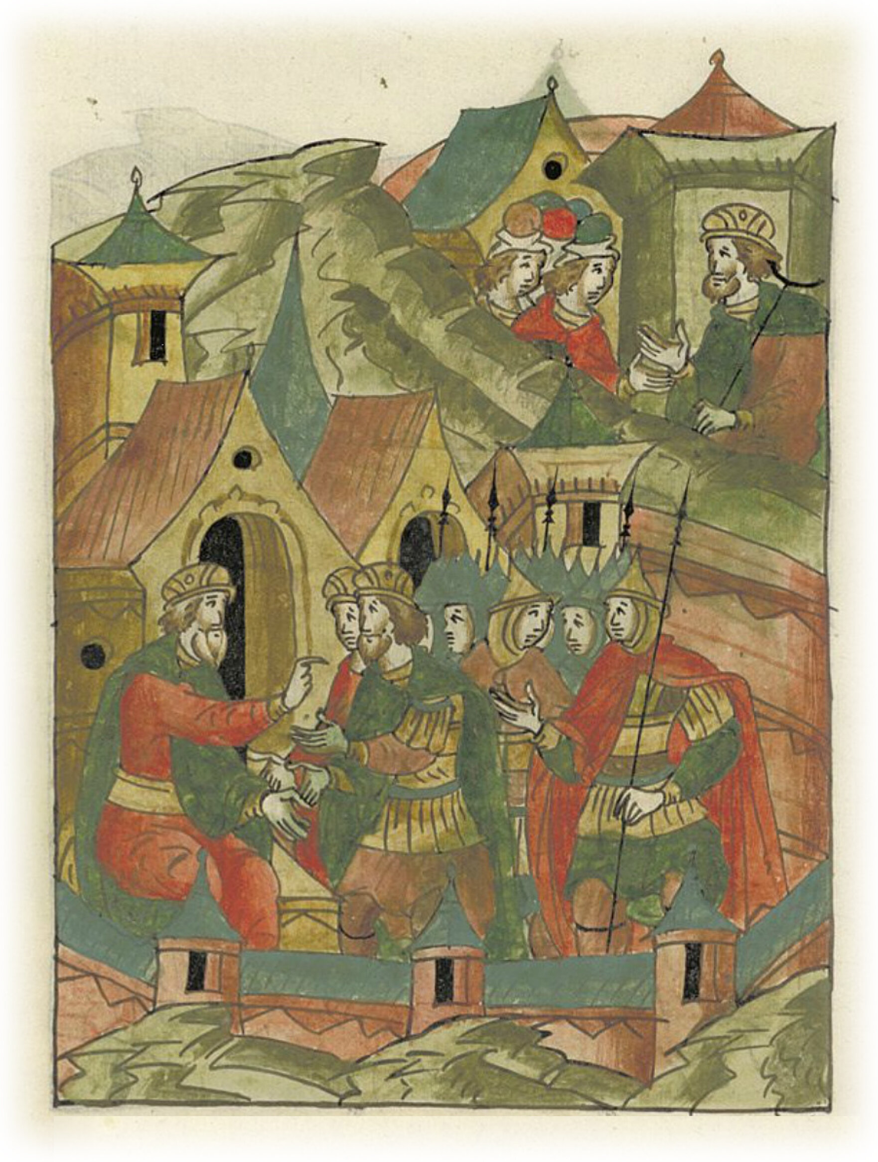 Ругодивские посадники Яким и Захар приезжают в Москву. Воеводы царя Ивана Васильевича Алексей Адашев и Иван Михайлов сообщают им, что государь пожалует их, если сдадут его воеводам помимо Ругодива Вышгород.