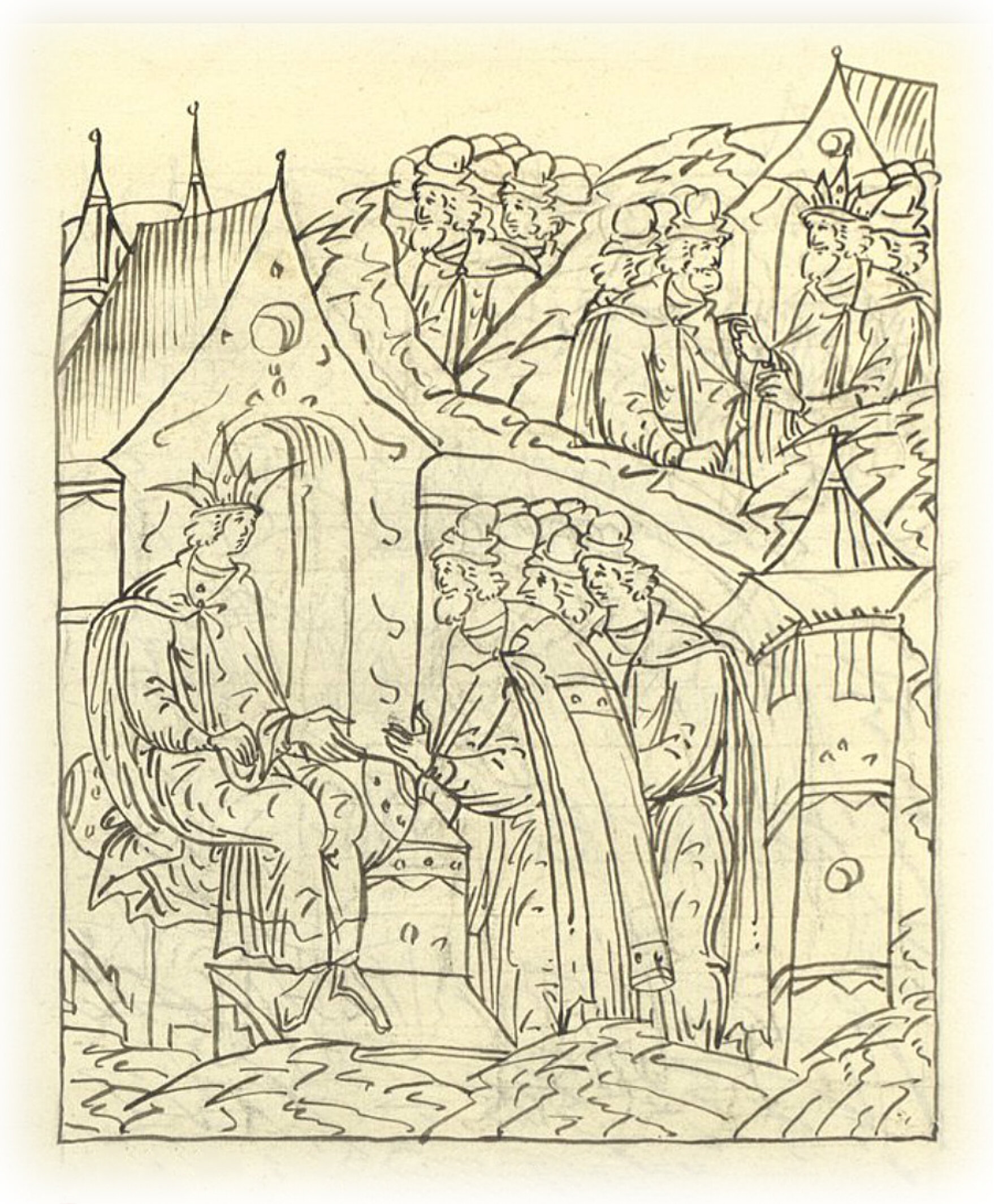 Ругодивские посадники Яким и Захар приезжают в Москву. Воеводы царя Ивана Васильевича Алексей Адашев и Иван Михайлов сообщают им, что государь пожалует их, если сдадут его воеводам помимо Ругодива Вышгород.