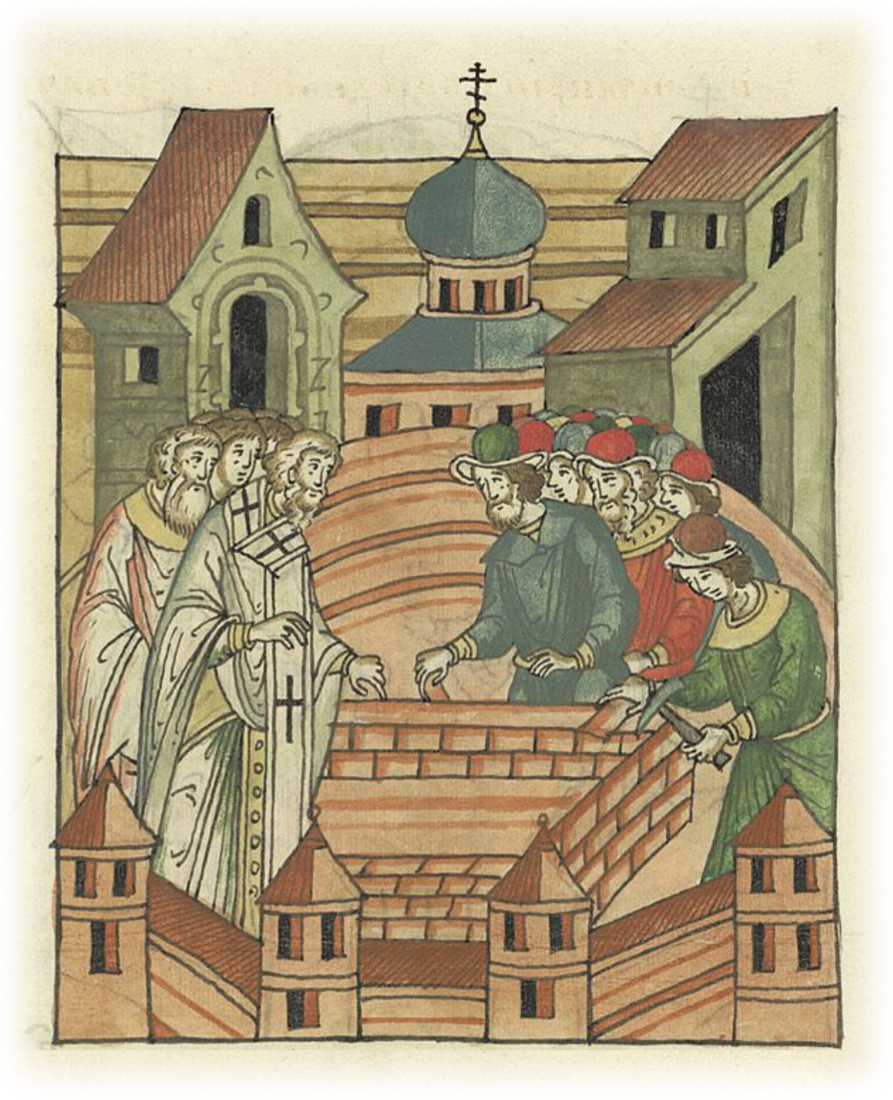 Епископ Антоний закладывает церковь во имя святой мученицы Варвары в монастыре в Новгороде.