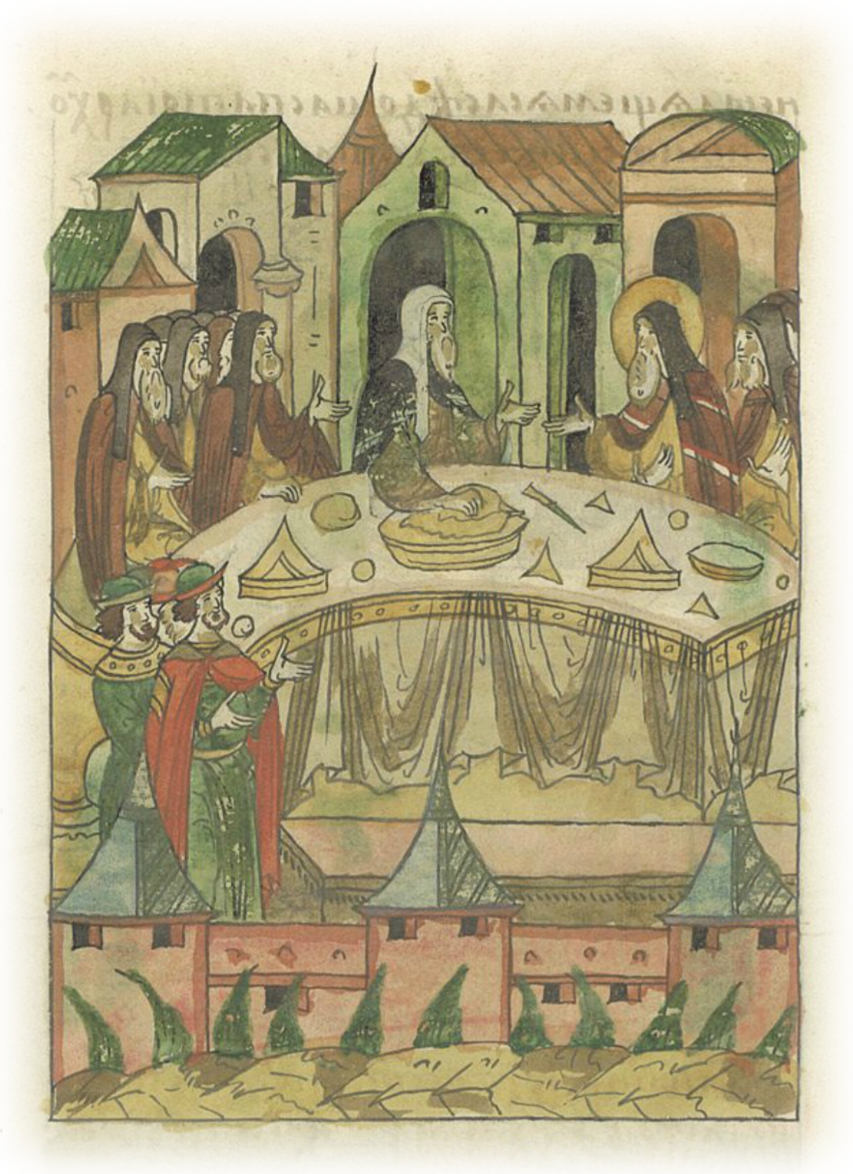 Старец же, сидевший близ патриарха и запрещавший ему есть мясо еще ранее в присутствии царя в Константинополе, сказал посреди трапезы: «Кир владыка мой патриарх, не делай этого, иначе брань великую воздвигнешь на себя».