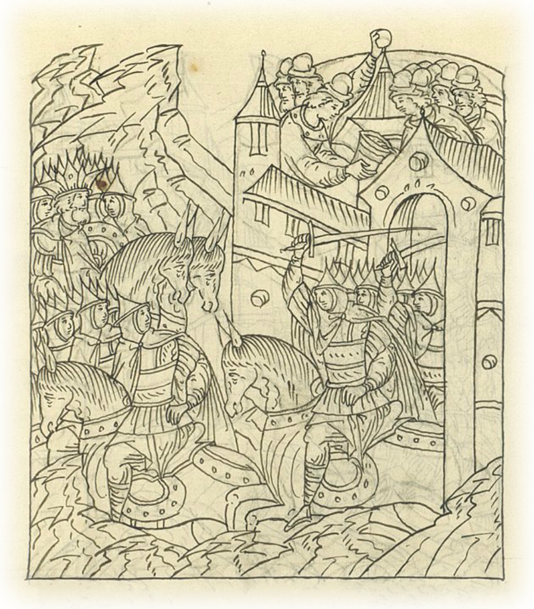 и начали в городе православные христиане молить Всемилостивого Бога и Пречистую Богородицу, и великих чудотворцев о помощи против нечестивых, об избавлении от них, и с помощью Всесильного Бога огонь в городе погасили и только с нечестивыми бились, и от города отбили врагов, ничего плохого нечестивые не успели причинить городу.