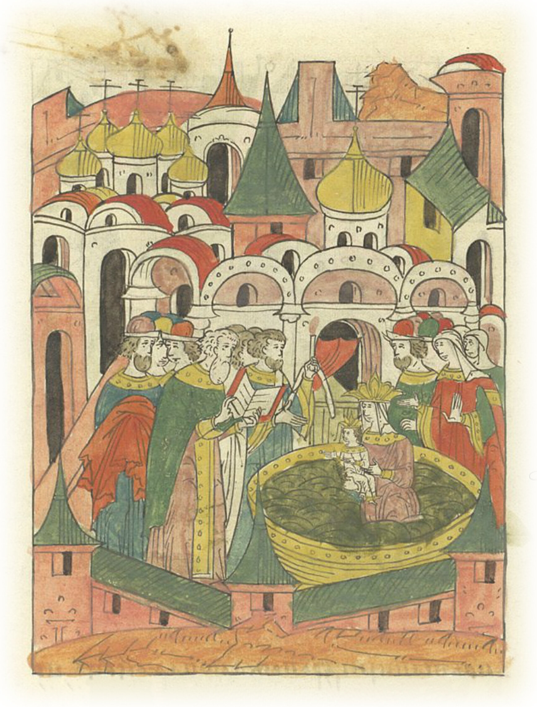 Царь Иван Васильевич велит крестить младшую Астраханскую царицу Ельякши и ее новорожденного сына, царевича Ярашты.