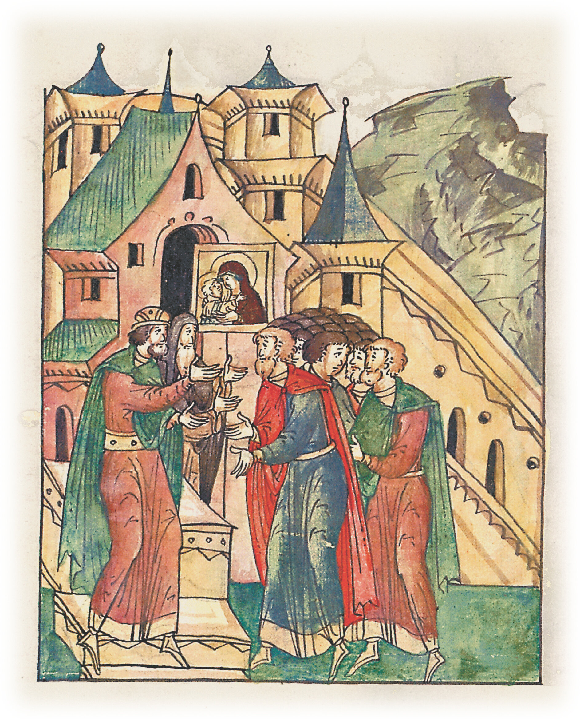 Митрополит Киевский и всея Руси Константин и Киевский князь Мстислав Изяславич хвалят Господа и Пречистую Богородицу за помощь в борьбе с половцами.